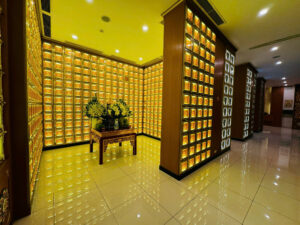 Trong bối cảnh đô thị hóa, đất nghĩa trang ngày càng thu hẹp, việc lưu giữ tro cốt tại chùa còn giúp tiết kiệm không gian, bảo vệ môi trường và giảm gánh nặng chi phí cho gia đình. Cực Lạc Đường được trang bị hiện đại với hệ thống lưu giữ tro cốt có mã QR, tiện tra cứu, dễ tiếp cận, đồng thời giữ được nét thiền vị trong thiết kế – từ tượng Phật, lá bồ đề, hoa sen cho đến từng ô an vị đều gợi nhắc sự giải thoát và thanh tịnh.